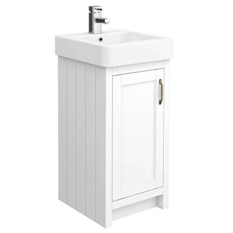 Chatsworth Traditional White Cloakroom Suite (425mm 1TH Floor Standing Vanity + Close Coupled Toilet)