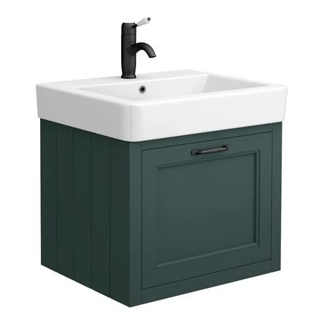 A high-quality traditional bathroom suite featuring a traditional low level toilet and a 560mm wide wall hung green vanity unit with it’s classic styling has been designed to match the Chatsworth range of bathroom furniture. Victorian inspired design with a modern twist.