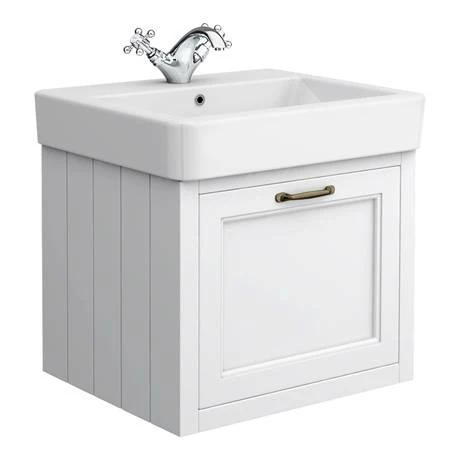 A high-quality traditional bathroom suite featuring a traditional low level toilet and a 560mm wide wall hung white vanity unit with it’s classic styling has been designed to match the Chatsworth range of bathroom furniture. Victorian inspired design with a modern twist.